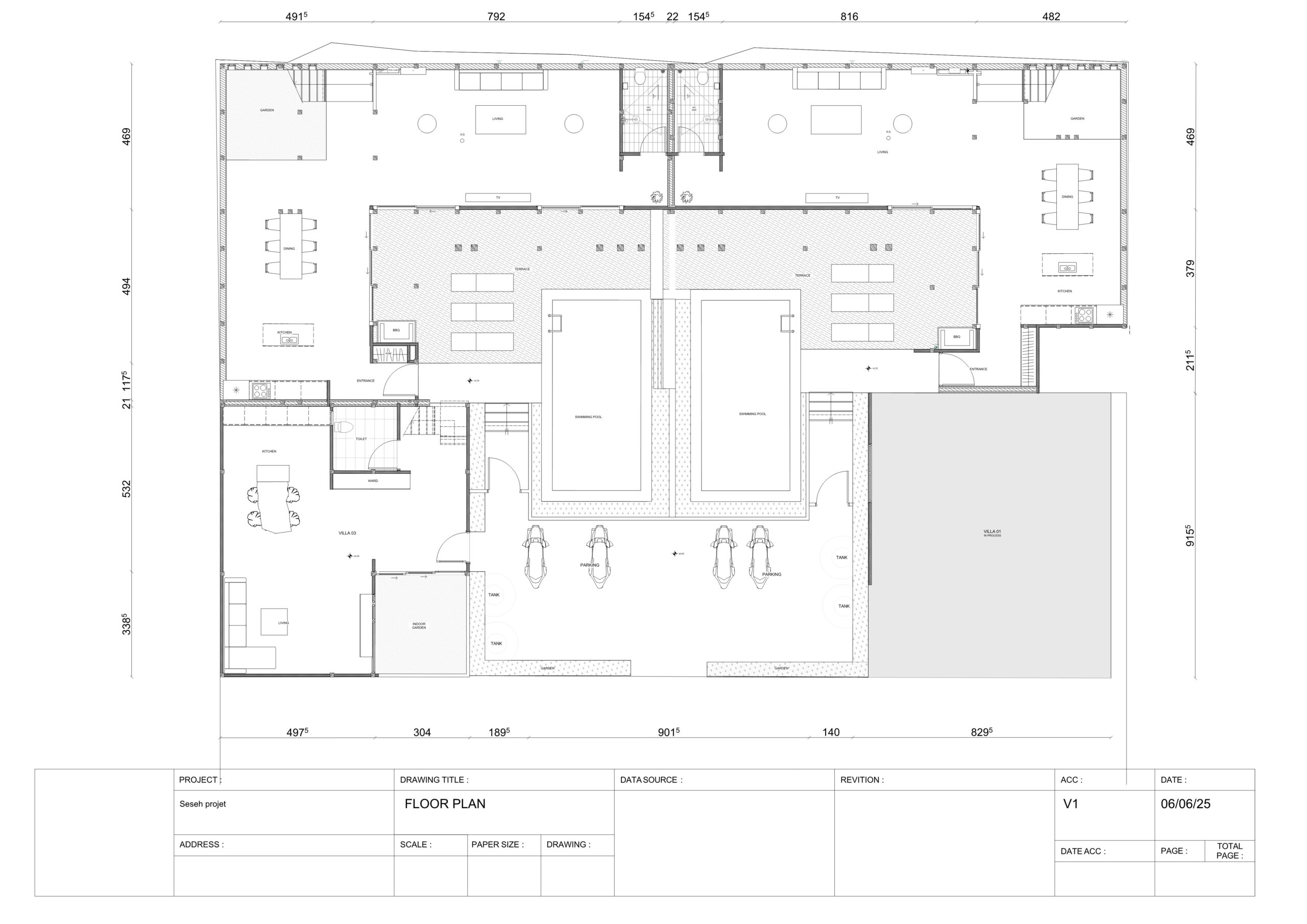 Living Area : 572 m² | Total of 4 villas: 2 two-bedroom villas + 2 four-bedroom villas