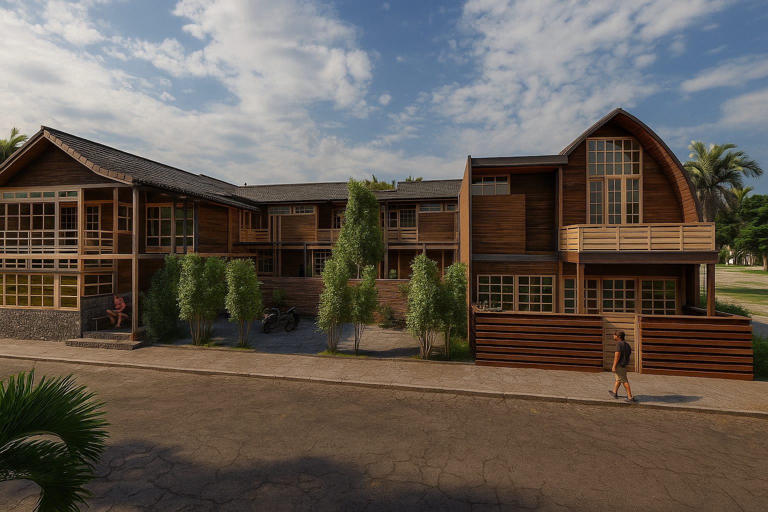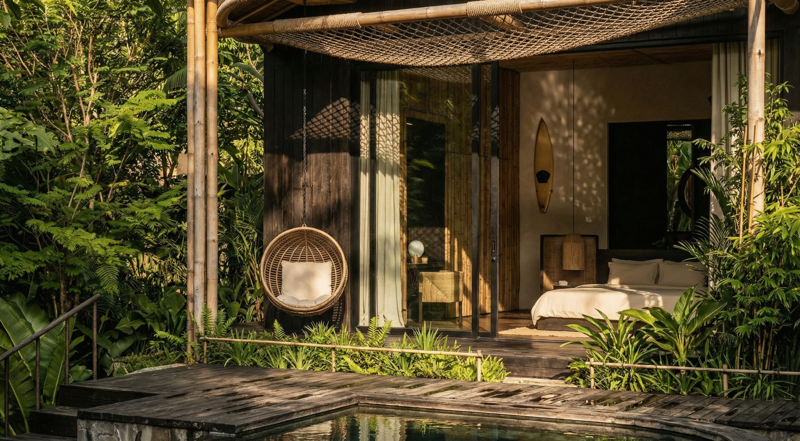 Located in the green surroundings of Seseh, Bali, The Wooden Haven is a small hamlet of four exceptional villas. The design, inspired by a refined Japanese aesthetic, prioritizes wood for its warmth and texture. The architecture integrates internal gardens, walkways, and hanging gardens to create visual harmony, and the running potable water ensures comfort. Each villa was designed to preserve privacy while allowing natural light to fill every interior space.